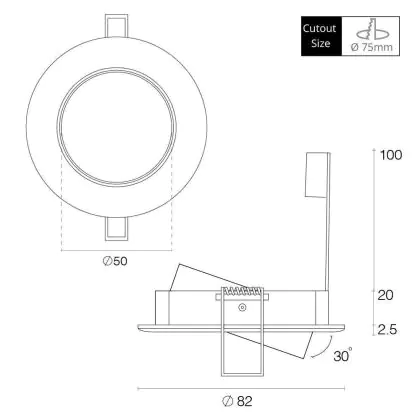 Beschrijving Any Lamp Inbouw Spot Circulair Kantelbaar Aluminium | Zaagmaat 75mm - GU5.3 Fitting
