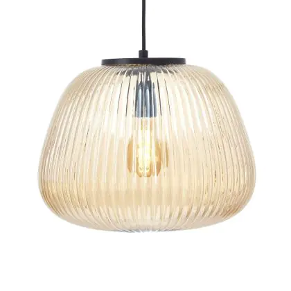 Beschrijving Brilliant Kaizen Hanglamp Glas Hanglamp Metaal Zwart Beige | 350mm - Geschikt voor 1x E27