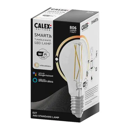 Je kunt ook meerdere Calex smart lampen koppelen aan onder meer een Google Home of Amazon Alexa apparaat. Hierdoor wordt het mogelijk om Calex verlichting met jouw eigen stemgeluid te bedienen. Door het geven van eenvoudige instructies als; ‘Hey Google, dim de lamp boven de tv’, heb je dit al binnen no-time geregeld! Tevens kun je deze peervormige E27 Calex Smart verlichting bedienen via een officiële Calex Smart afstandsbediening. Deze Calex lamp werkt ook op een wandschakelaar, maar niet op een dimmerschakelaar. Hou daar rekening mee. Ben je op zoek naar Smart verlichting met een andere fitting of in een andere vorm? Klik dan hier om ons volledige assortiment te bekijken!