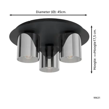 Beschrijving Eglo Plafondlamp Gorosiba 1 Staal Zwart | IP20 - Geschikt voor 3x E27