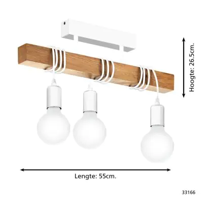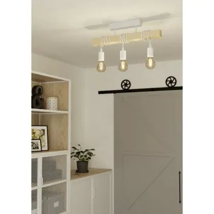 Beschrijving Eglo Plafondlamp Townshend Staal Wit Hout | IP20 - Geschikt voor 3x E27