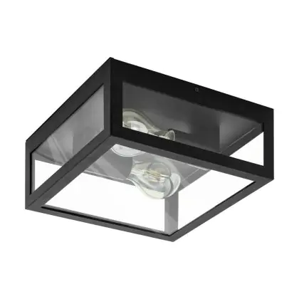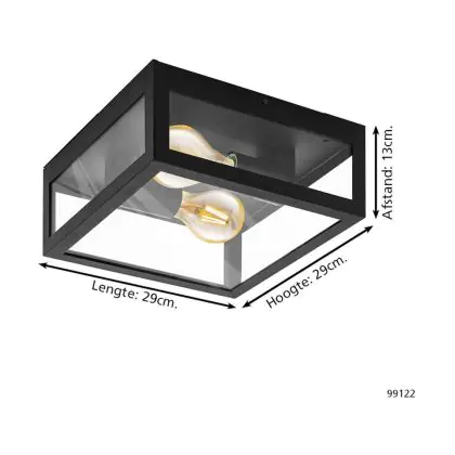Beschrijving Eglo Wand en Plafondlamp Amezola Staal Zwart | IP44 - Geschikt voor 2x E27