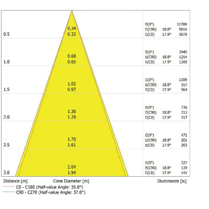 LED downlights kun je vergelijken met een inbouwspot, maar dan met een, over het algemeen, bredere stralingshoek. Downlight armaturen hebben een medium gradenbundel (25 - 40°), die perfect is voor ondersteunende verlichting, of een (zeer) brede gradenbundel (41 - >91°), die gebruikt wordt voor algemene verlichting. Deze 36° LED downlight van kun je in vele werkomgevingen en/of woningen gebruiken.