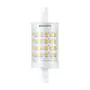 Deze R7s LED lamp is de efficiënte en energiezuinige LED-vervanger van R7s halogeenlampen. Wat opvalt aan deze buisvormige LED verlichting is de lampvoet aan beide uiteinden. Hiermee klik je de lamp vast in een geschikt armatuur. R7s LED staaflampen beschikken over een brede stralingshoek (gradenbundel), waardoor het licht meerdere kanten op schijnt. Dat is onder andere ideaal voor bouwplaatsen, sportvelden of (hoge) wand- en plafondarmaturen. R7s LED lampen met een extra warm witte kleurtemperatuur (2700K) kom je ook tegen in design armaturen voor woonkamers en slaapkamers. De kleurtemperatuur van deze LED lamp is: 3000K - Warm Wit.